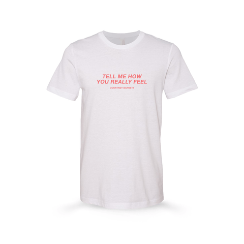 Tell Me How You Really Feel Red Text (White Tee)
