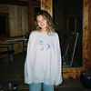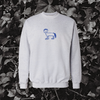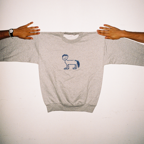 Horse with Bowl Cut Embroidered Crewneck Sweatshirt (Blue)