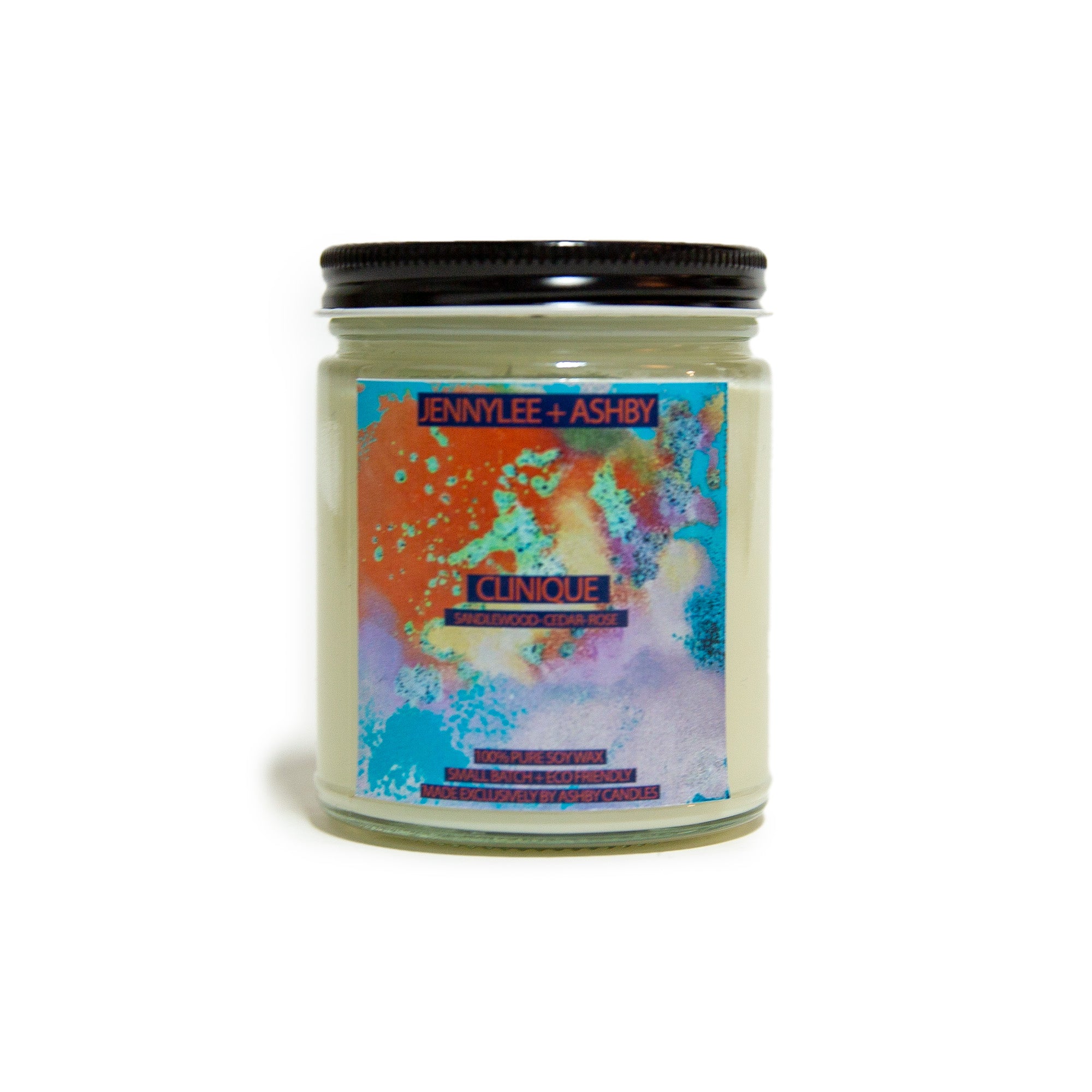 Soy wax candles; Essential oils of sandalwood - cedar - rose; 9oz., 55 hour burn, and eco friendly; Hand poured in Los Angeles by Monica Ashby.