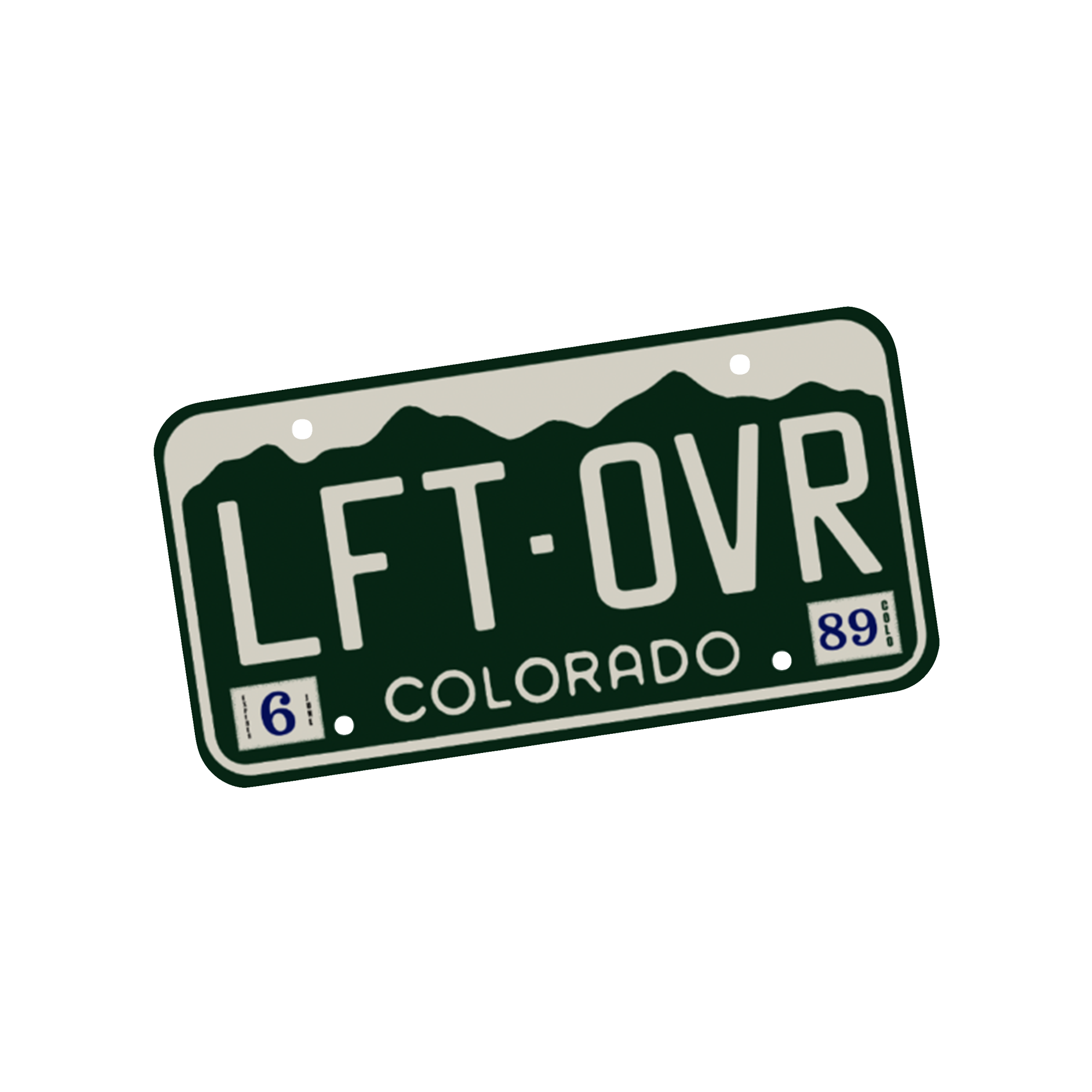 Colorado license plate with LFT OVR text