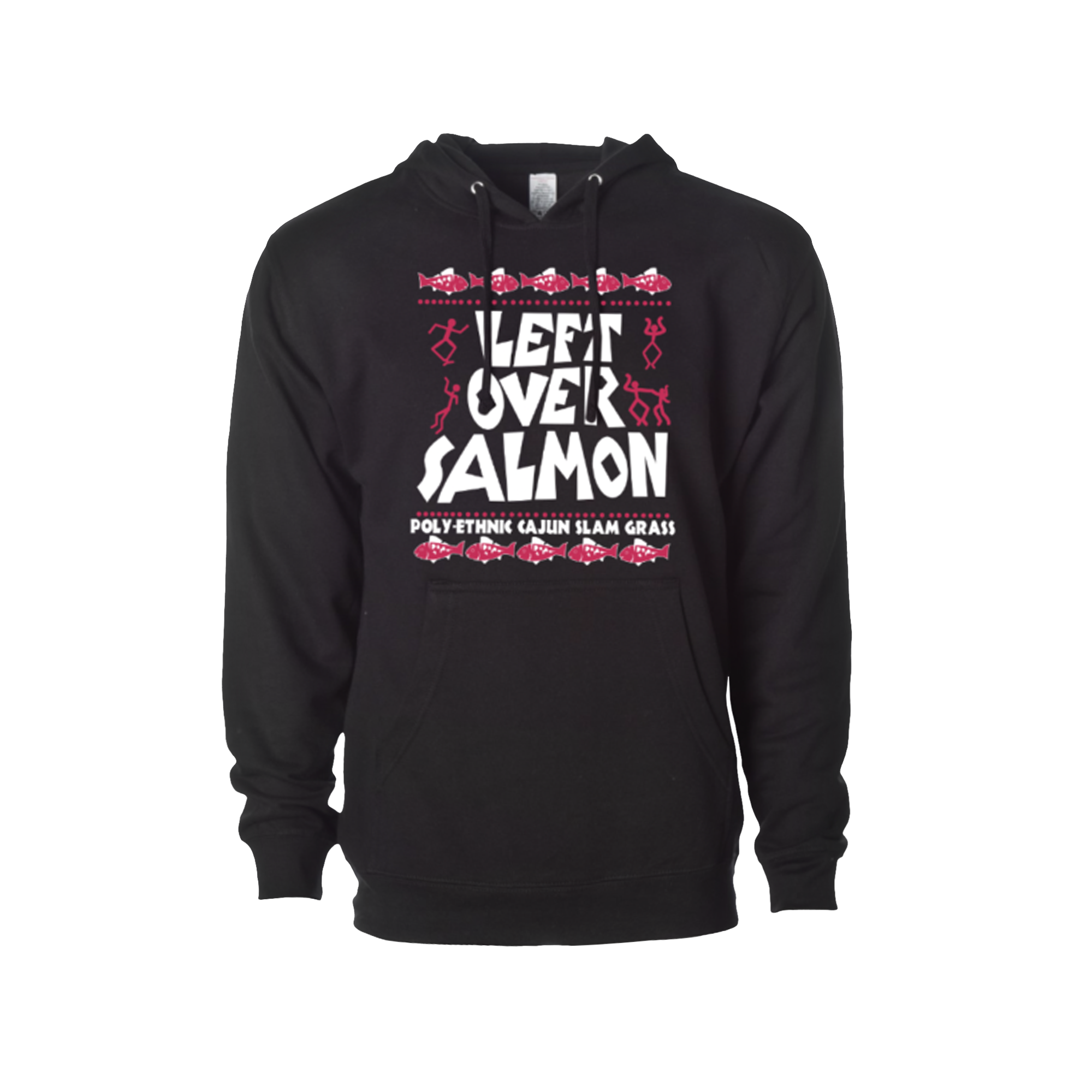 Left over salmon, Poly-ethnic, cajun, slam grass printed on front
