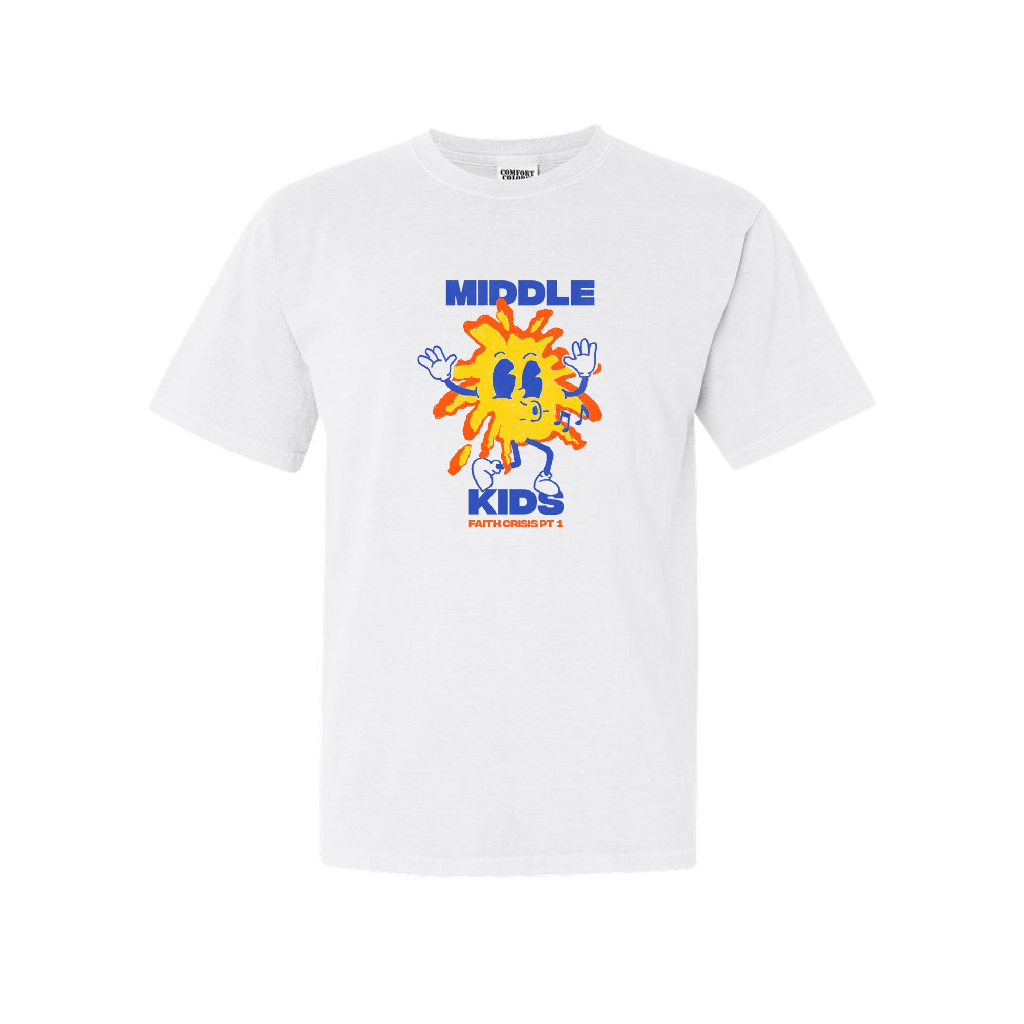 Little Faith Crisis Buddy tee. Comfort Colours 1717 in white. Designed by Connor Dewhurst.
