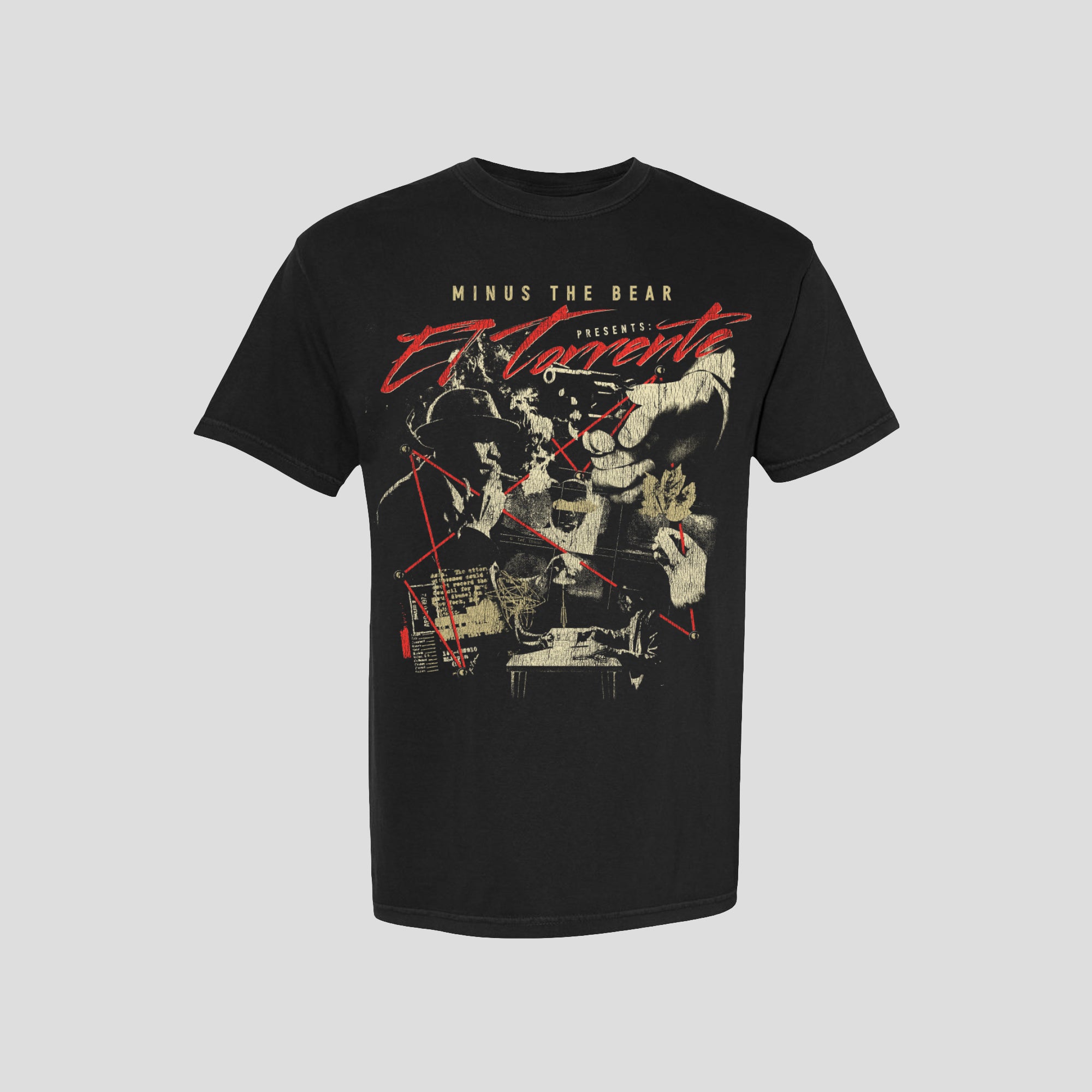A t-shirt uniquely designed and inspired by the track El Torrente featured on Minus The Bear's album Menos el Oso
