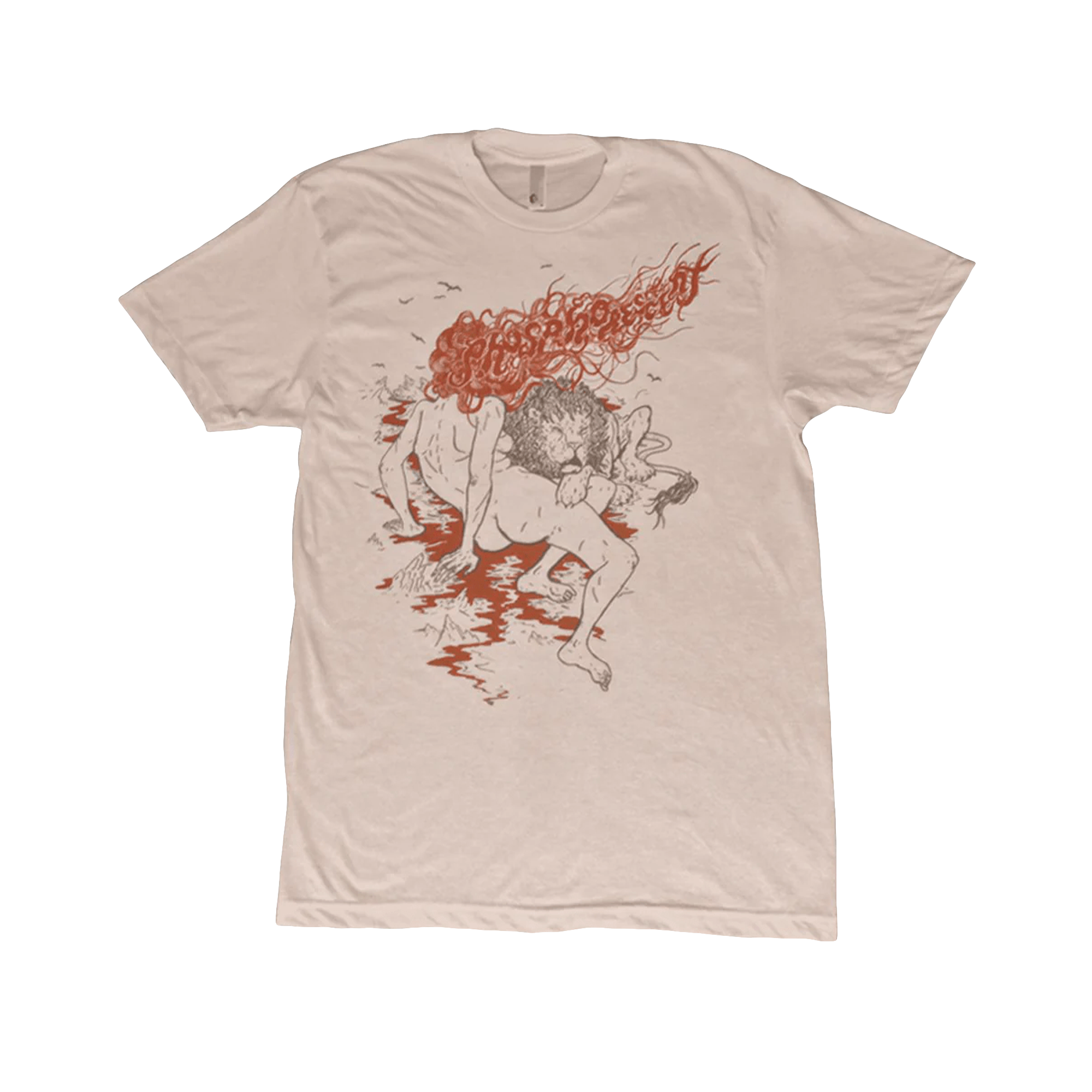 Lightweight tan colored tee with the Lion Tamer design on the front. Super soft cotton & polyester blend.