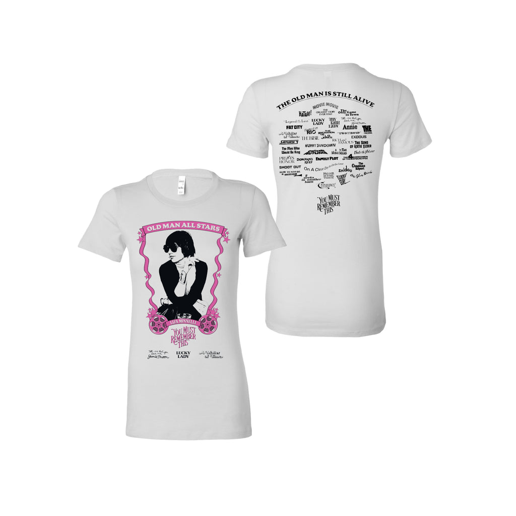 We polled members of the You Must Remember This Patreon on their favorite recurring stars of films featured in our series “The Old Man is Still Alive." The winner, Liza Minnelli, is featured on two limited edition t-shirts, one white and one black.